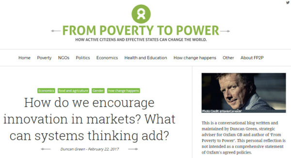 Clearly, pictures are a critical component for cranking up the appeal of blog pieces. So you should think about sourcing them professionally. There are a number of online tools for this. However, pics are not as important as some people claim. One of the most widely read blogs in development cooperation for example, ‘From Poverty to Power‘ by Oxfam’s Duncan Green with 300,000 subscribers, uses images, but they are not very fancy. It is obvious that the blog’s success doesn’t hinge on them.